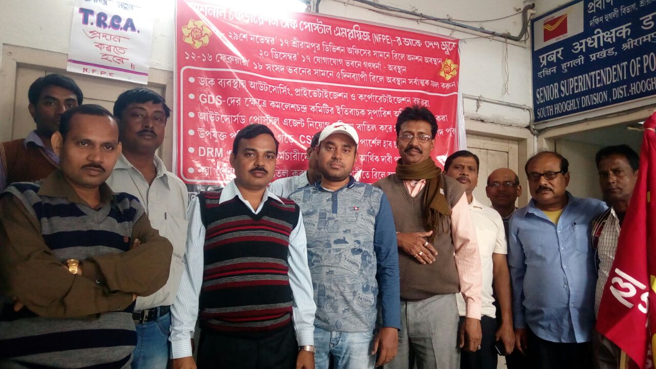 FIRST DAY OF TWO DAYS' RELAY HUNGER FAST INFRONT OF ALL DIVISIONAL OFFICES BY NFPE & AIPEU-GDS ON 28-11-2017