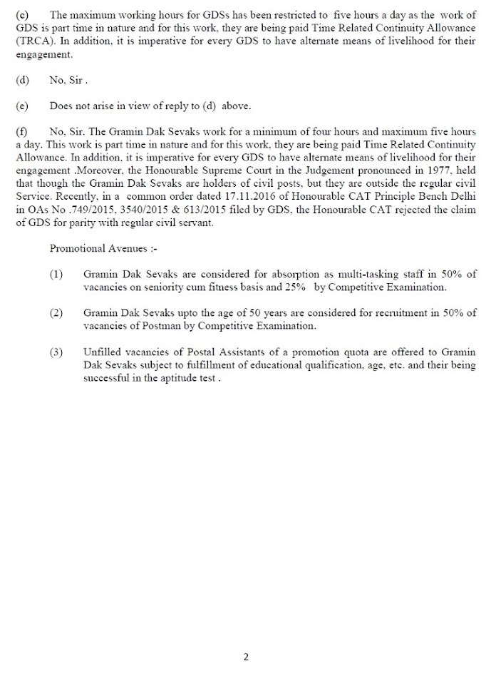 GRAMIN DAK SEVAKS :: Lok Sabha Q &A (16-09-2020)