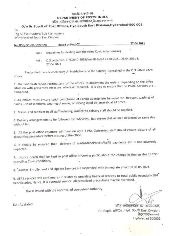 Now as per suggestions recd from various leaders,keeping in view the present Covid situation,it is hereby modified to be held as Protest Demonstration during lunch hours, maintaining all norms related to Covid-19 in front of all DOs and HOs.