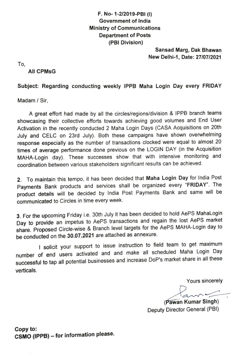 - SPM shall dispatch ATM card and passbook to concerned branch post office duly entered in BO slip.